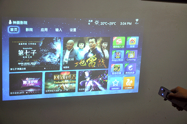 神画ZI的WIFI接受能力还有待提高,在播放网络视频时会出现断续情况,而像电视盒子类产品上基本不会出现此类情况,作为一款自带安卓系统的投影仪,使用起来与安卓手机几乎无异,使用方法我就不再赘述了,但有几项功能还是值得“神话”一下。